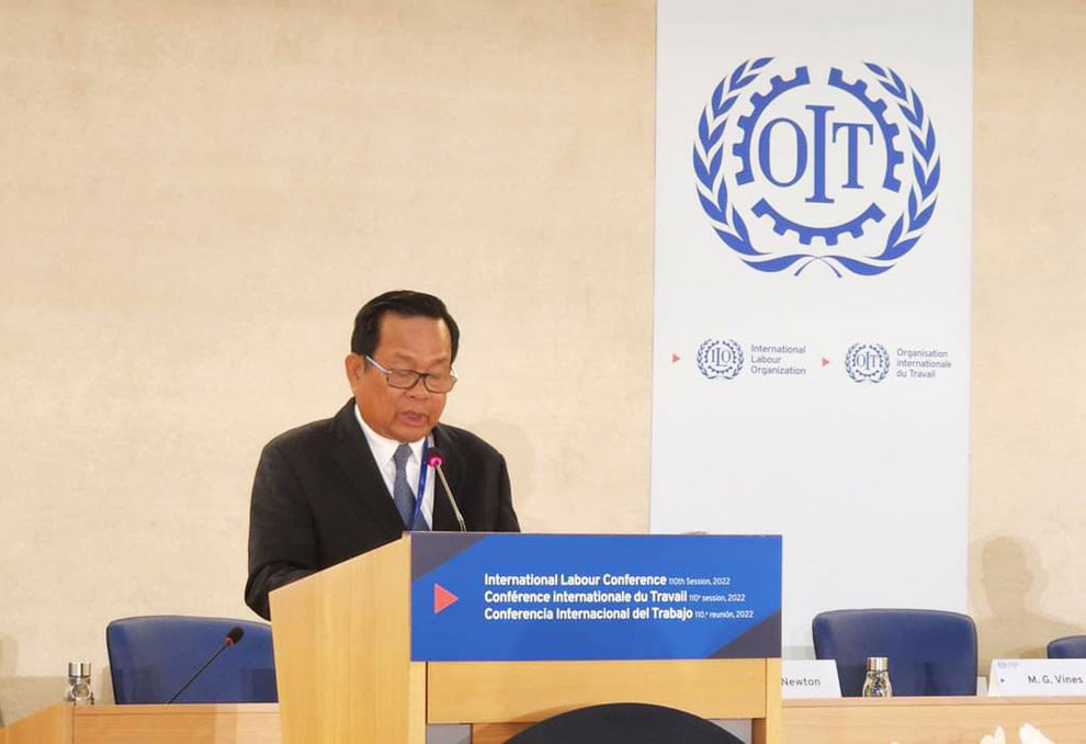 Samheng expressed his support as he led a ministry delegation to the 110th session of the ILO’s International Labour Conference, scheduled to run from June 6-12 in Geneva, Switzerland.