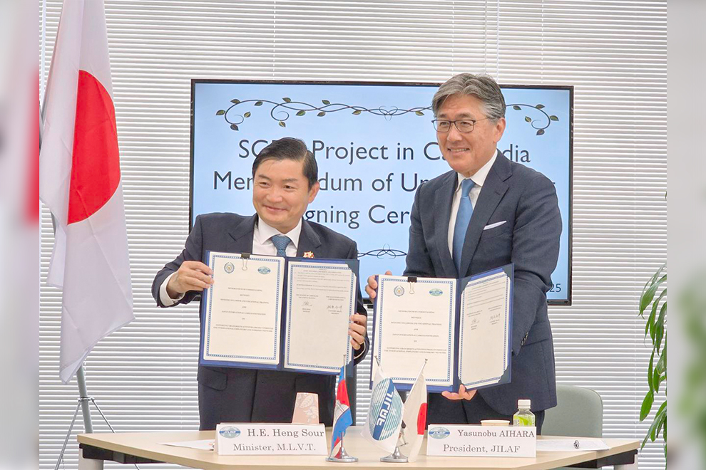 Labour minister Heng Sour led a Cambodian delegation to the signing ceremony in Tokyo, Japan. He presided over the ceremony, along with Yasunobu Aihara, president of JILAF​.