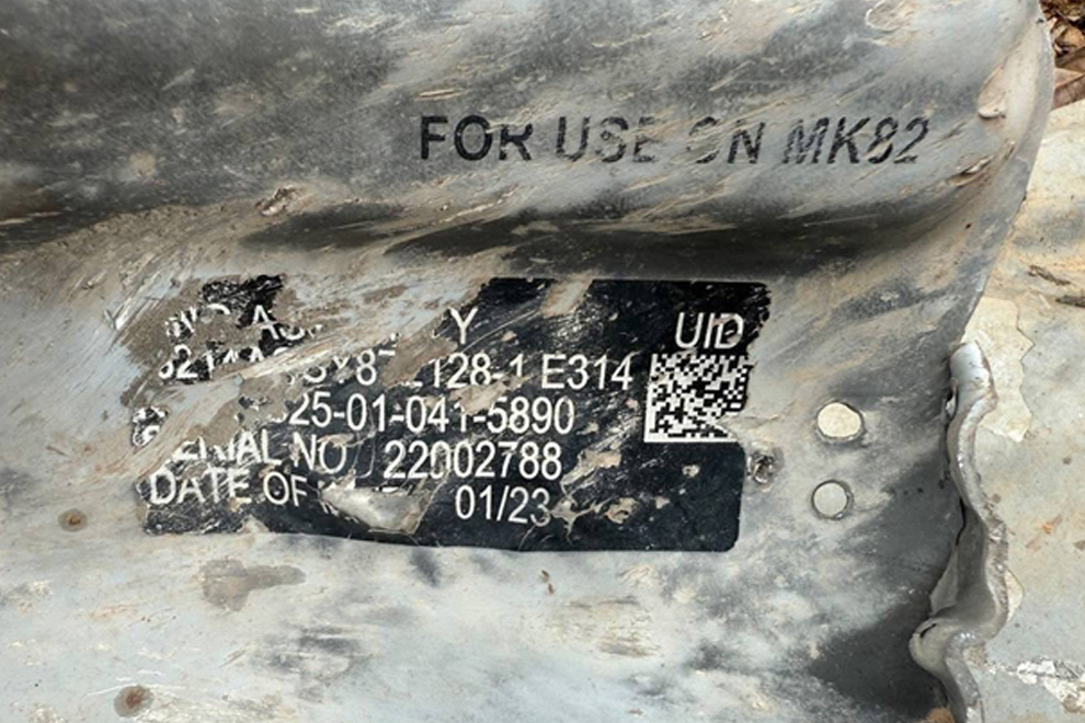 The Cambodian Mine Action Centre (CMAC) has uncovered fragments from two MK-82 bombs that were dropped from Thai F-16 aircraft. Manufactured in 2023, they were equipped with the GBU-12 Paveway II guidance system, produced in Israel.