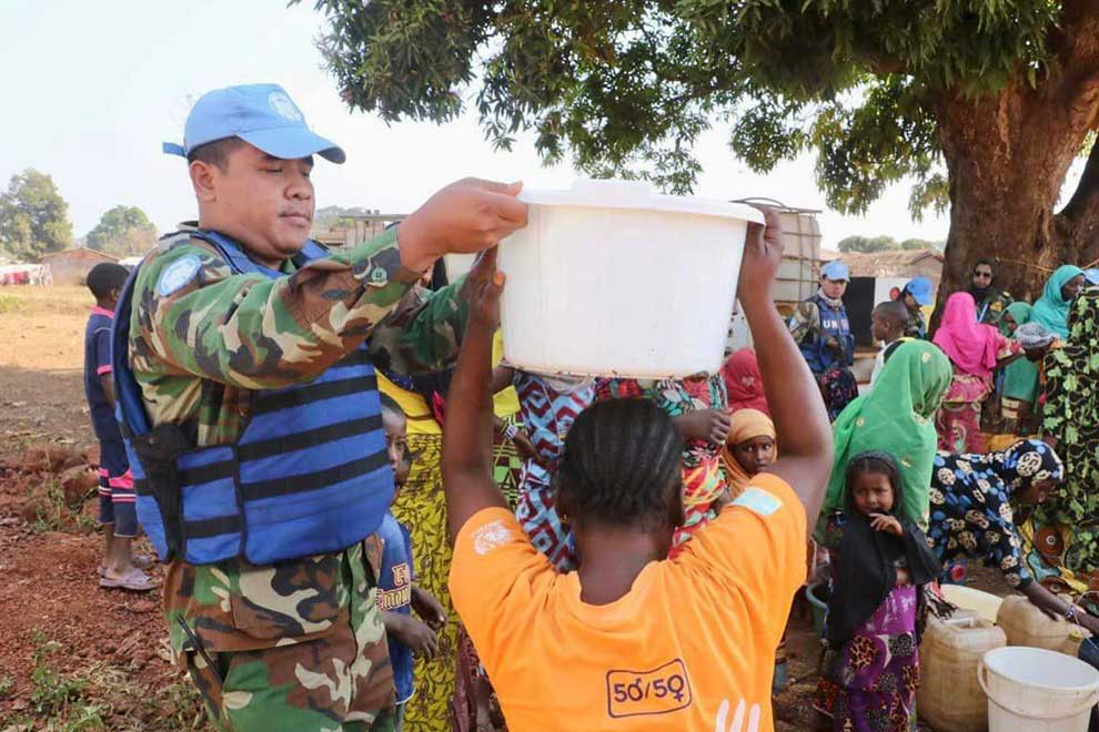 Every month, the Cambodian peacekeepers who are on a UN mission to the Central African Republic (CAR), distribute 4,000 litres of clean water to 120 impoverished CAR families in the Bria region, where there is a shortage of clean water.