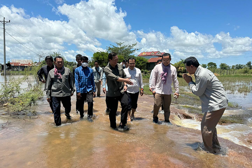 During a visit to the flooded area in Kampong Kor commune, Kampong Svay district on August 10, Manet inspected the construction sites of both dams and met with local communities.