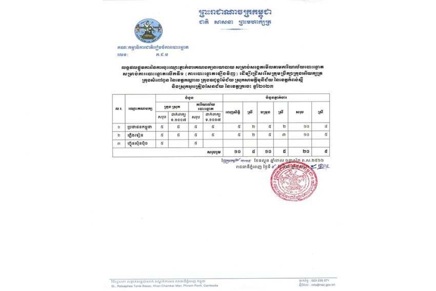 According to the NEC’s March 9 notice, three political parties – Cambodian People’s Party, FUNCINPEC and Candlelight Party—will have a total of 20 observers at each polling station.