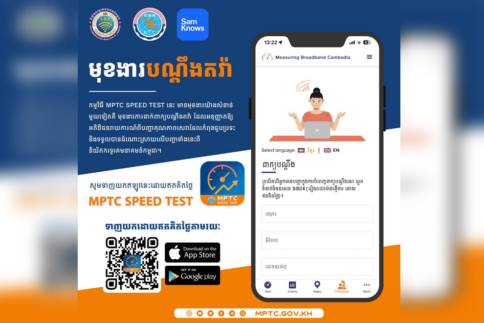 In a step towards enhancing customer service, the Ministry of Post and Telecommunications has introduced a new complaints feature to its “MPTC Speed Test” app.