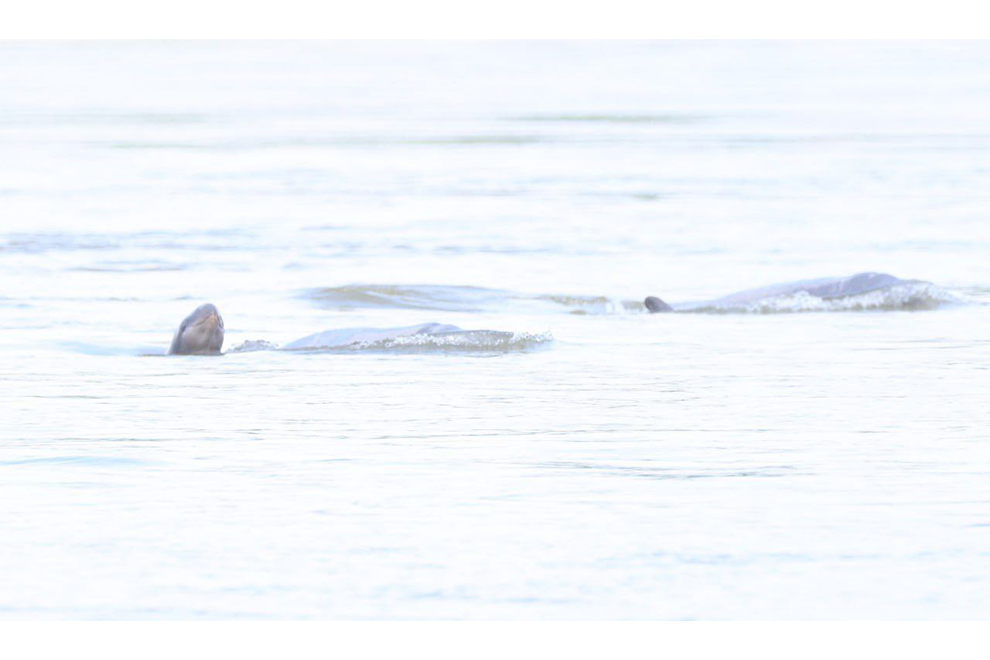 A Mekong dolphin calf was spotted in Kratie province on Sunday May 25.