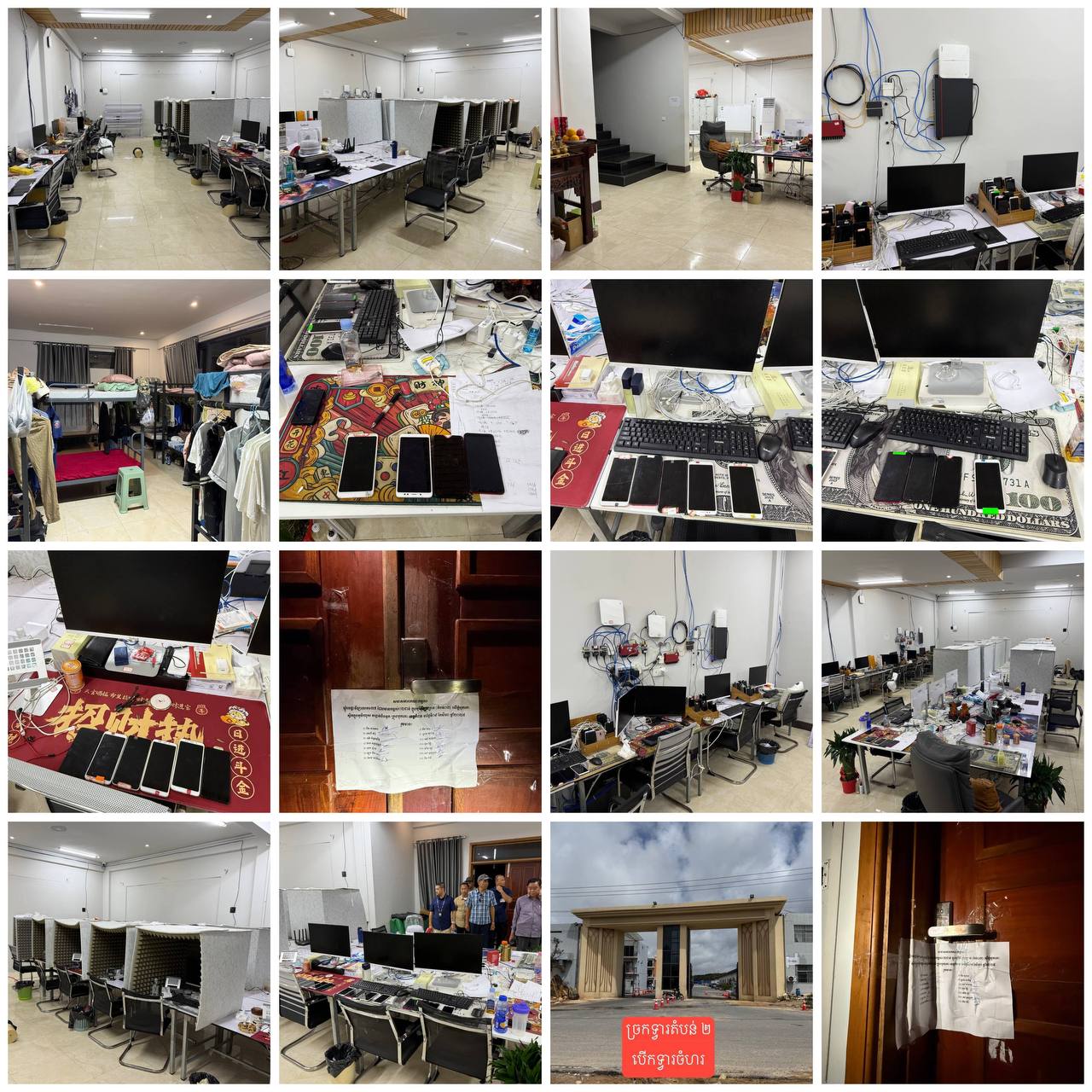 The first location saw police raid a villa, seizing equipment used for scams, including 301 mobile phones, 39 desktop computers and 14 tablets. Three suspects were sent to court, with efforts ongoing to apprehend additional leaders of the operation.