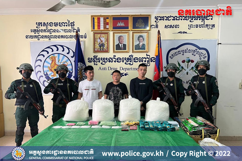 Following a lengthy investigation, police from the Ministry of Interior’s Anti-Drug Department – in collaboration with the Phnom Penh municipal police – busted a drug trafficking and processing operation, confiscating more than 100kg of illegal drugs at three different locations in the capital.