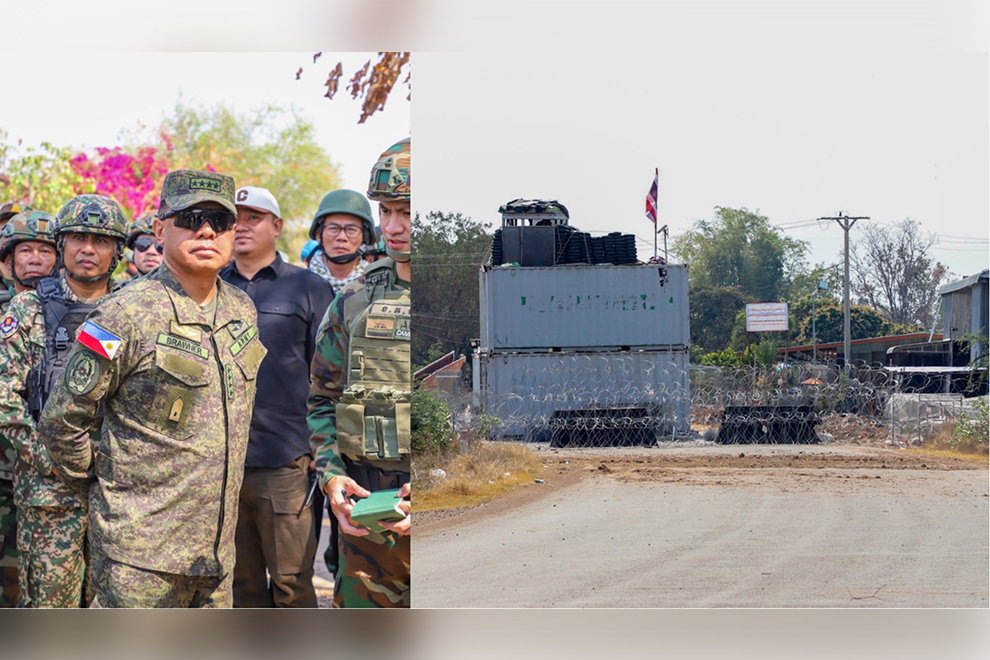 General Romeo S. Brawner Jr., Chief of Staff of the Armed Forces of the Philippines, inspected the border situation in the area of the Boeung Trakuon checkpoint in Thma Puok district, Banteay Meanchey province, where he personally observed the shipping containers and razor wire barricades that the Thai military placed illegally after the ceasefire came into effect.