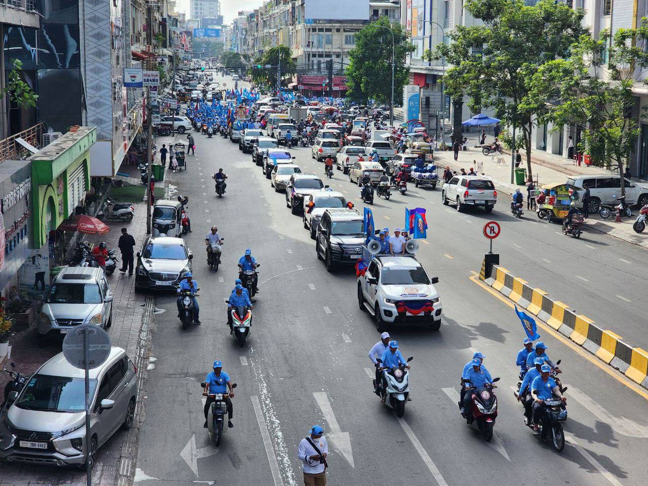 The procession will depart from party headquarters at 8am, moving from Wat Phneat Simpaly Street onto Win-Win Monument Blvd. From there, it will head towards Prey Tea village and then National Road 4, turning onto Chom Chao Boulevard until it reaches Toul Pong Traffic Stop. The march will then progress to Toul Pong Road, concluding with a lunch break near Toul Pongro Market.