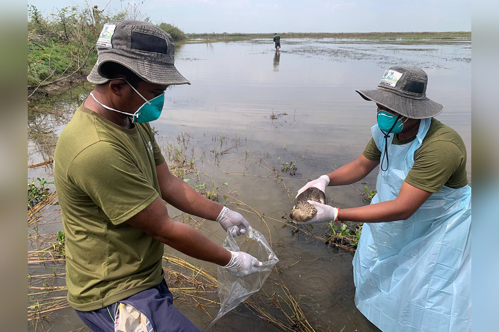 NLC reported that the team found two dead wild ducks floating in a water management pond within the protected area, along with rice grains laced with poison scattered in the pond. Samples were collected and sent to the Wildlife Health Technical Team of Wildlife Conservation Society. The duck carcasses were burned. Rangers are currently attempting to identify those responsible.