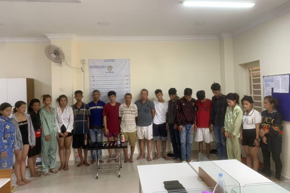 After receiving a tip-off, police raided a guest house in Srah Chork commune of Phnom Penh’s Daun Penh district on May 21, arresting 19 people, including eight women. Some 14 packages of narcotics and related paraphernalia were discovered and seized from 10 rooms of the guest house, according to the NACD.