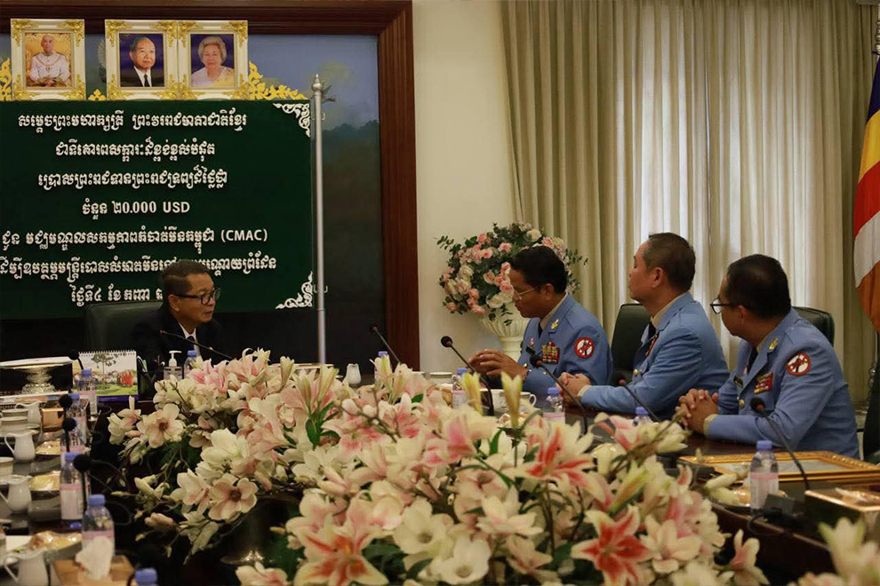 Heng Ratana, director-general of CMAC, received the donation through Deputy Prime Minister and Minister of the Royal Palace Kuy Sophal at the Royal Palace on Thursday, September 4.