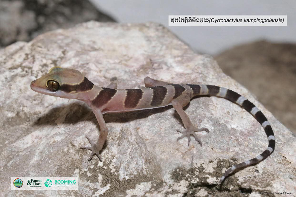 They include the Striped Kamping Poi Bent-Toed Gecko (Cyrtodactylus kampingpoiensis), found in the mountains of Kamping Poi, Banan, Sampov, and Khpoh, as well as the Battambang Leaf-Toed Gecko (Dixonius noctivagus), found in the same location, and the Khpoh Gecko (Hemiphyllodactylus khpoh), found in limestone karsts in Banan district.