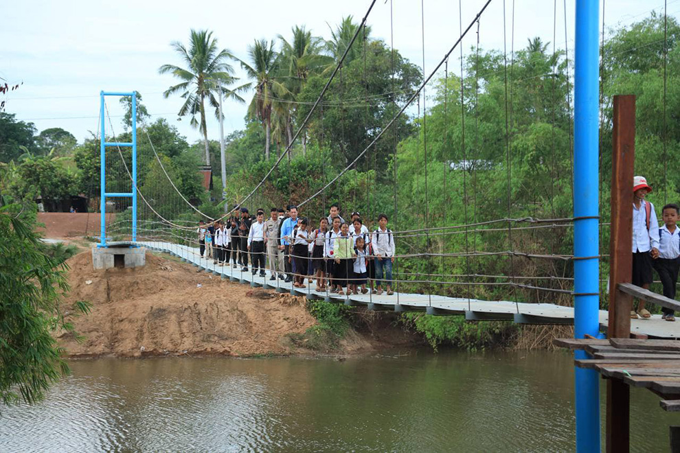 In response to a video purporting to show students crossing a river in a dangerously overcrowded vessel, Pursat provincial governor Khoy Rida explained that the video was old and that the transport ministry has constructed a suspension bridge called the 'Ta Des Bridge', which is used by many people each day. Supplied.