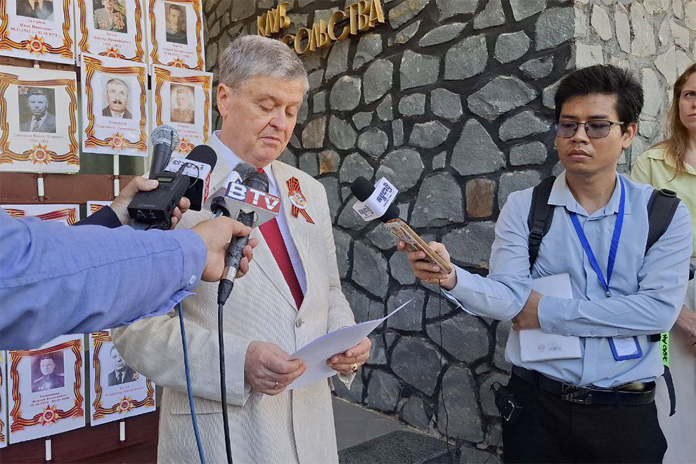 Anatoly Borovik issued the statement on the morning of Wednesday, May 7, at the Russian embassy in Phnom Penh, during the commemoration of the “Immortal Regiment” march — a ceremony held to honour the memory of patriotic heroes of World War II.