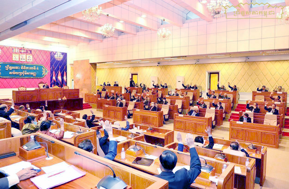 The vote was held during the Senate’s plenary session on February 20, chaired by its second vice-president Tep Ngon, with 59 senators present to review and comment on the draft laws.