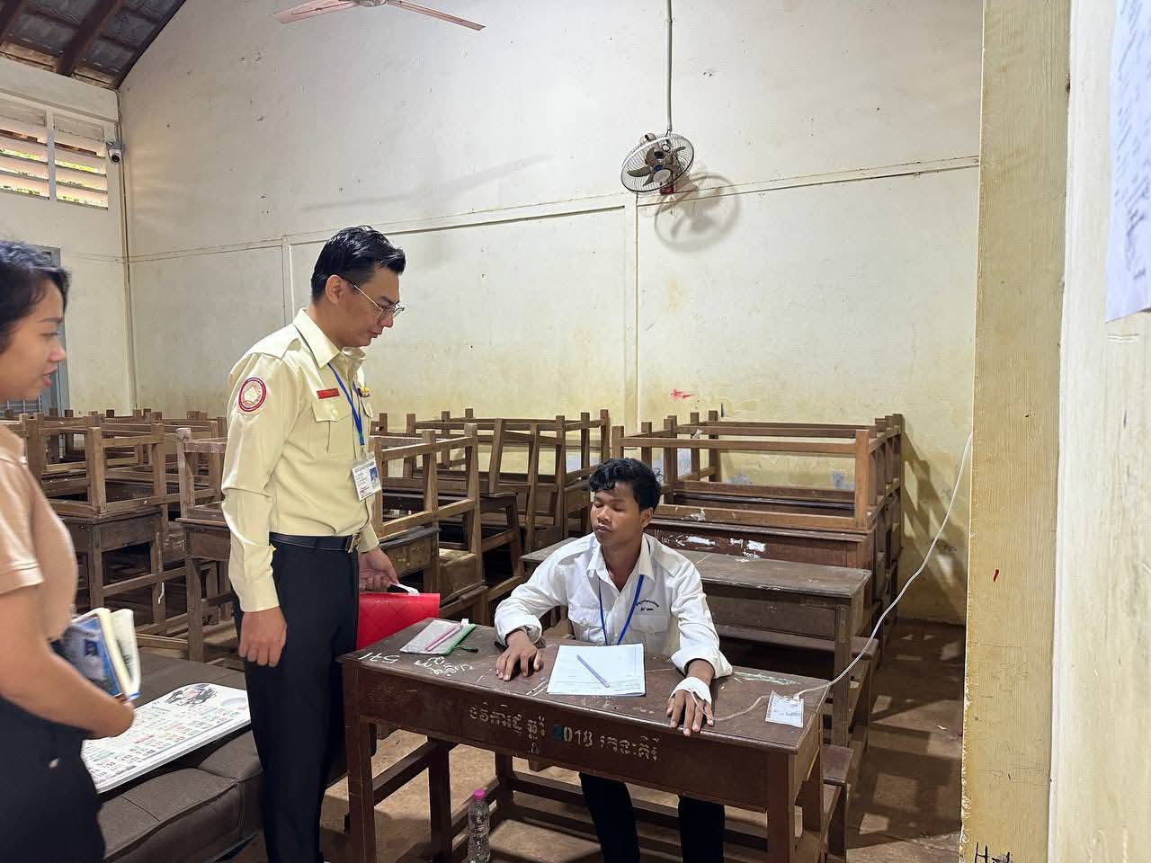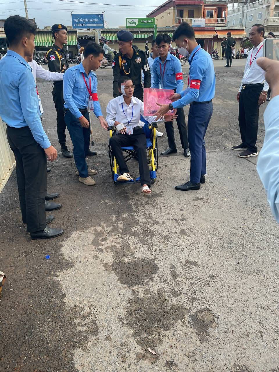 Candidate Lisa Lido (table 406) was assisted by ACU observers and staff to reach a separate exam room after she also suffered an accident, and Pheang Dany (table 608) in Ratanakkiri, sustained a hip injury, making it difficult for her to sit for long periods. She requested to take the exam in a medical room, and following a medical evaluation, this was approved by the centre chief.