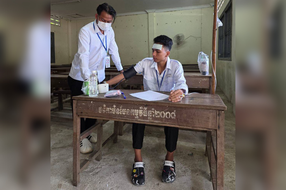 Thor Pheaktra (table 415, Prek Sleng High School, Kandal province), had been sick for six days with dizziness, shortness of breath and nausea. He was allowed to take the exam in a separate room.