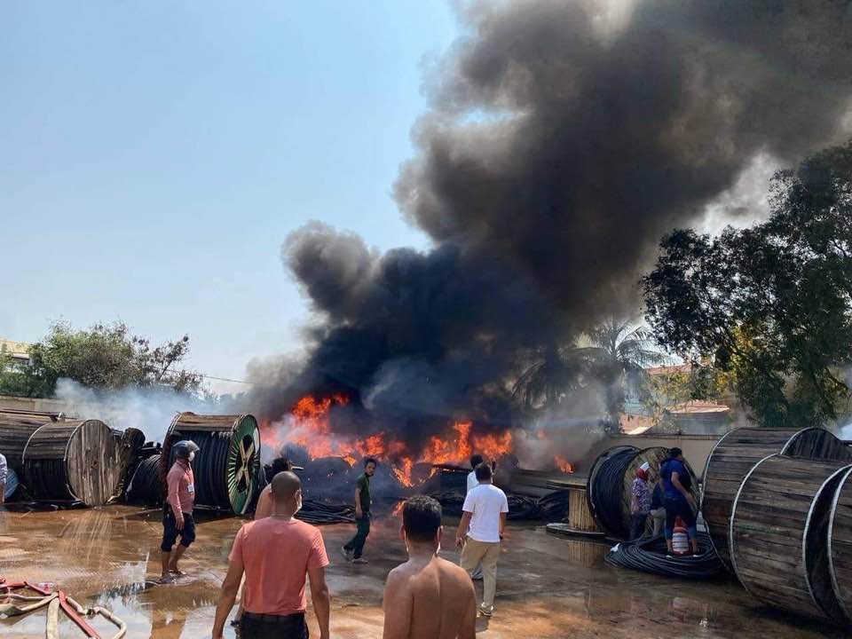 A fire blazed through an electric wire warehouse located in a Japanese electricity plant in Khnar village of Siem Reap town’s Chriev commune on April 15.