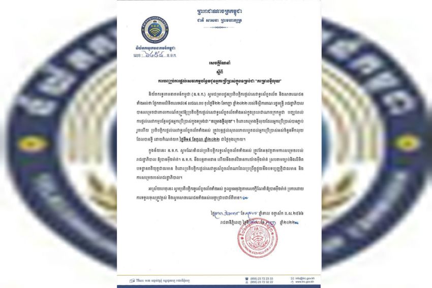The Telecommunication Regulator of Cambodia (TRC) on September 22 issued a notice reminding all mobile phone service providers to stop providing users with any additional credit that takes the form of a “loan scheme”.