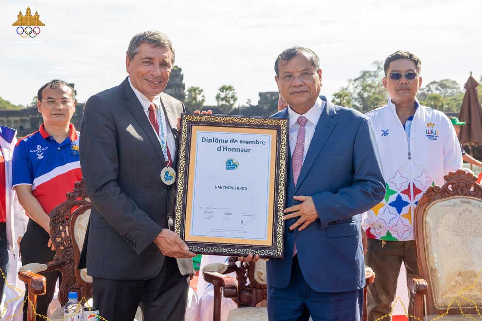 In a unanimous decision, former tourism minister Thong Khon, the president of the National Olympic Committee of Cambodia (NOCC), has been appointed an honorary member of the Congress of the Most Beautiful Bays in the World.