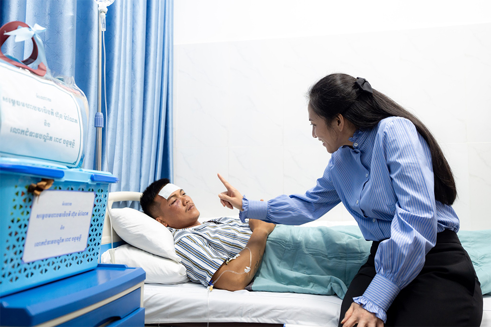 Despite the overwhelming pain of severe smoke inhalation, Kimheng displayed an unwavering spirit.