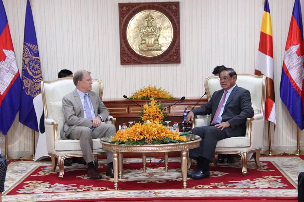 Sar Kheng met with Murphy for talks on November 4 at the interior ministry.