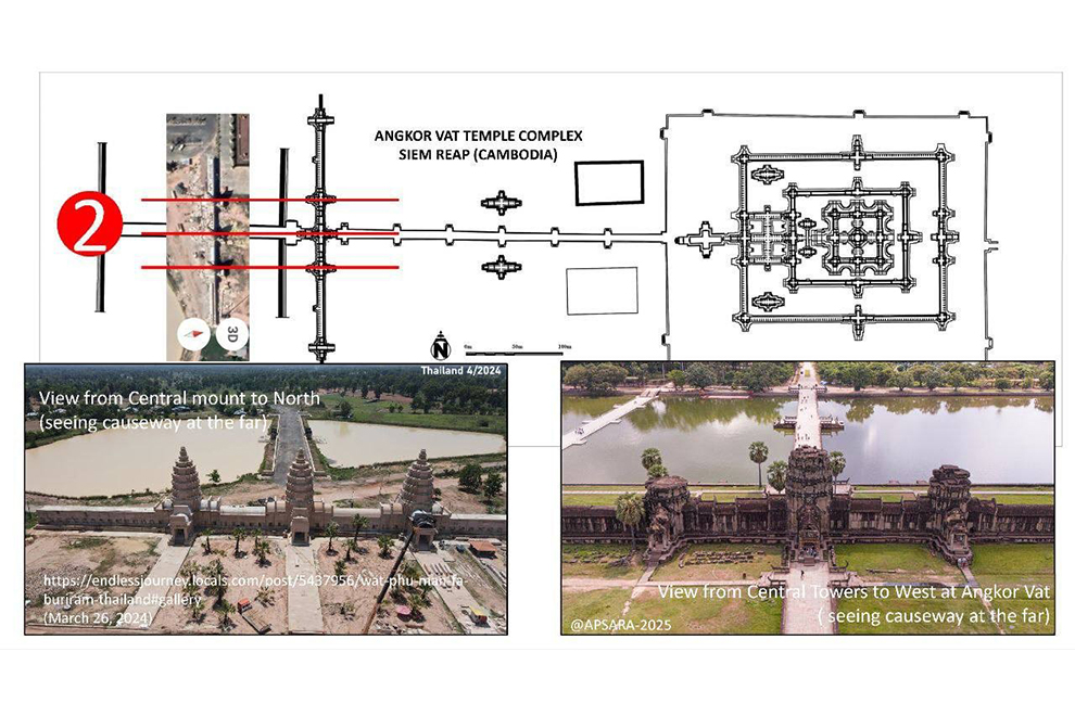 Despite claims that the project draws inspiration from Phimai, the master plan, axial symmetry, central quincunx tower arrangement and spatial organisation unmistakably replicate the unique architectural blueprint of Angkor Wat. This design is neither generic nor transferable and carries ethical and legal implications under international heritage protection standards and World Heritage principles.
