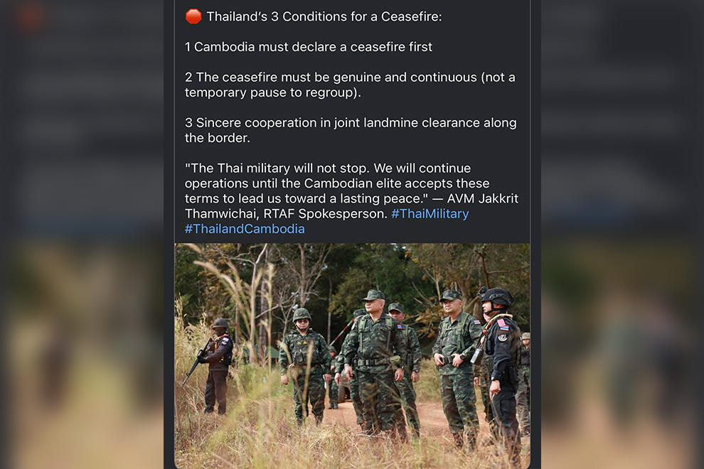 Thai leaders have outlined their conditions for a ceasefire. FB