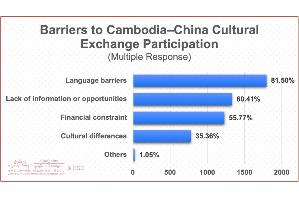The survey revealed three major barriers that hinder Cambodian youth from fully realising their educational aspirations: language proficiency, financial constraints and lack of information. Language barriers, cited by 81.5% of respondents, are particularly daunting, as many students struggle to meet the Mandarin proficiency requirements for scholarships. Financial constraints (55.8%) also pose a significant challenge, with airfare, living costs and hidden fees deterring low-income students. Meanwhile, 60.4% of respondents cited a lack of information about opportunities, especially in rural areas where access to digital platforms is limited.