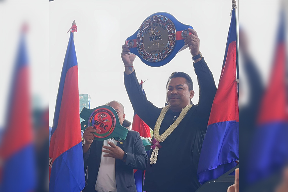 Srey Chanthorn, president of the Kun Khmer International Fight (KKIF) club, has clarified that he has secured a major milestone by securing recognition for the term Kun Khmer – along with the Cambodian national flag and Angkor Wat – on a ceremonial belt issued by the World Boxing Council (WBC).