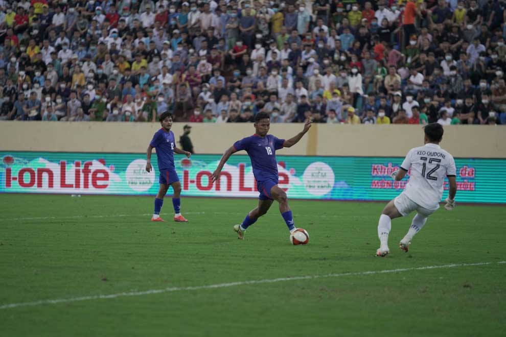 In front of 30,000 fans at Thien Truong Stadium, rising star Sieng Chanthea showed why he is in the hearts of Cambodian fans as his strike from the left flank went into the top of the net to help the Young Kouprey lead in just the 4th minute. Lao defender Anantaza Siphongphan scored an own goal after Visakha striker Sa Ty’s shot was deflected from the Lao goalkeeper before bouncing off him into the net as Ryu Hirose’s U23s finished the first half with a 2-0 lead.